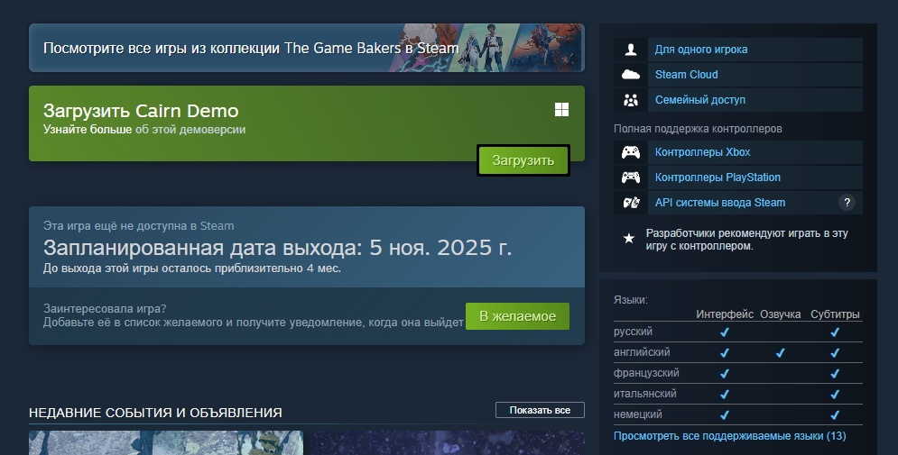 В Steam под описанием игры написано Дата выхода: 1 квартал 2026 года