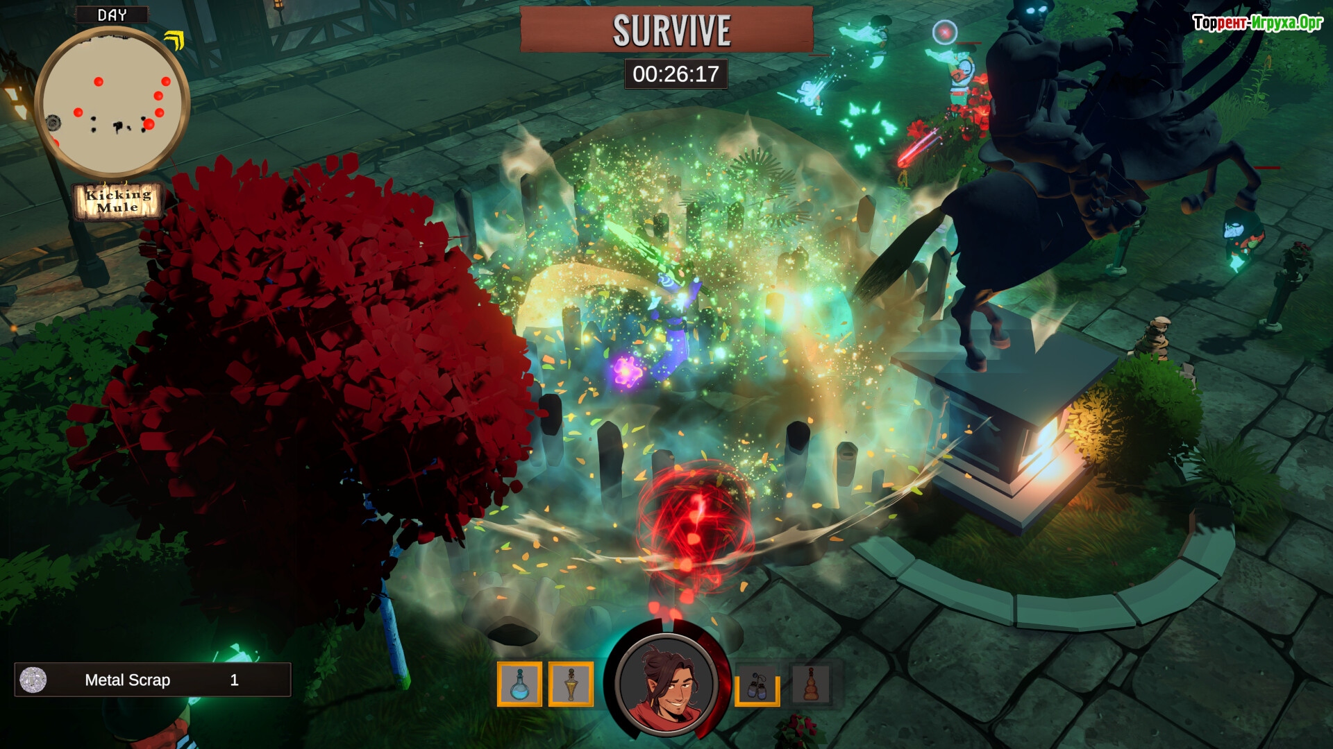 Вам предстоит варить зелья из собранных по всему городу ингредиентов — от грибов до подозрительных настоек. Каждое выпитое зелье влияет на боевые способности: от огненных плевков до превращения посоха в гигантскую рыбину. Слишком много — и вы ощутите последствия магического опьянения.