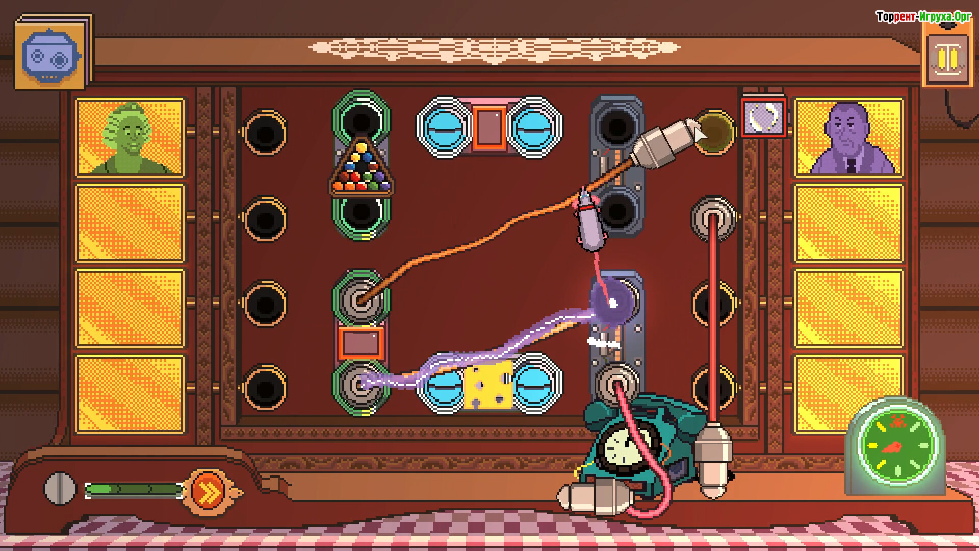 Коммутатор работает на физике: провода нужно перетаскивать вручную, создавая цепочки соединений и не допуская обрывов. В распоряжении — более двух десятков странных устройств, от пиратской пушки до НЛО и куска сыра, каждое из которых меняет поведение линии. Комбинации гаджетов позволяют стабилизировать хаос или, наоборот, усилить его.