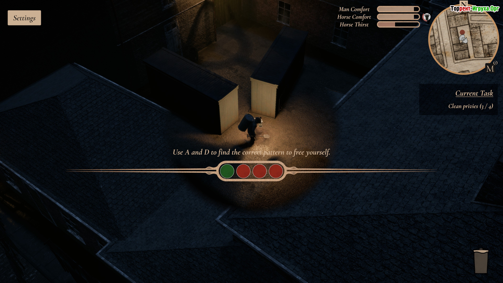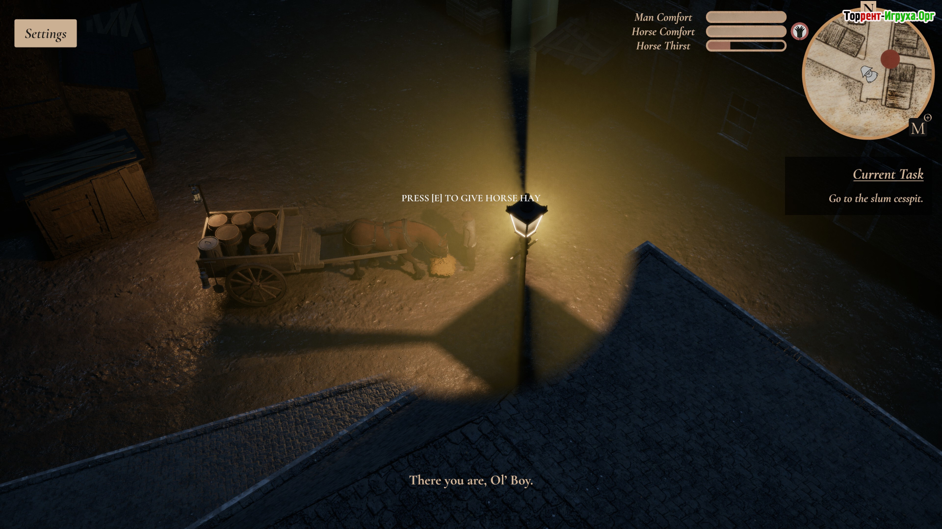 Nightsoil — это сюжетная приключенческая история о последней ночной смене старого фермера в охваченном холерой Лондоне 1854 года. Вместо героизма — тяжёлый труд, вместо яркого света — фонари в тумане и узкие дворы, пропахшие болезнью. Вместе с верным конём Ол' Боем вы медленно проезжаете по спящему городу, выполняя работу, без которой он давно бы захлебнулся в собственных отходах.