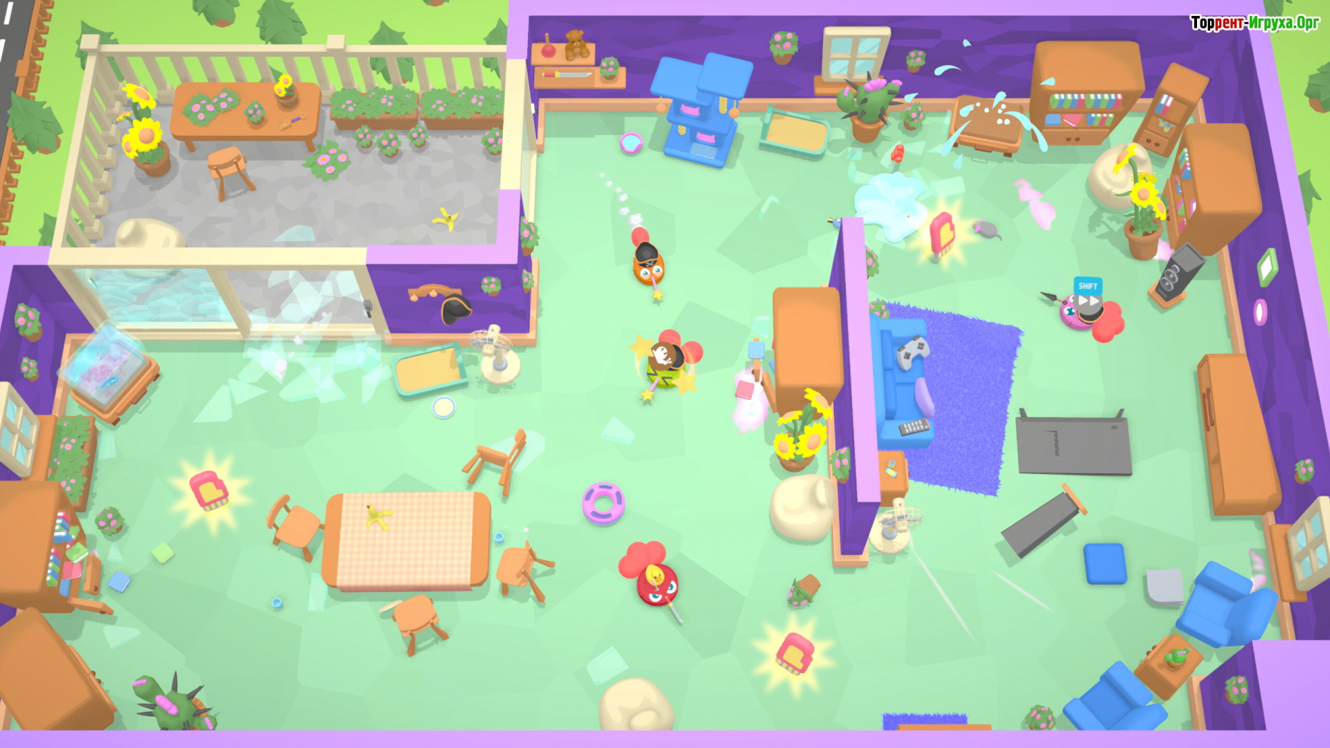 Помимо основного режима доступны мини-игры с изменёнными правилами. Победа в них открывает преимущества для следующего раунда. Управление предельно простое — минимум кнопок и быстрый вход в матч. Поддержка до шести игроков усиливает хаос и делает каждую встречу плотной и непредсказуемой.