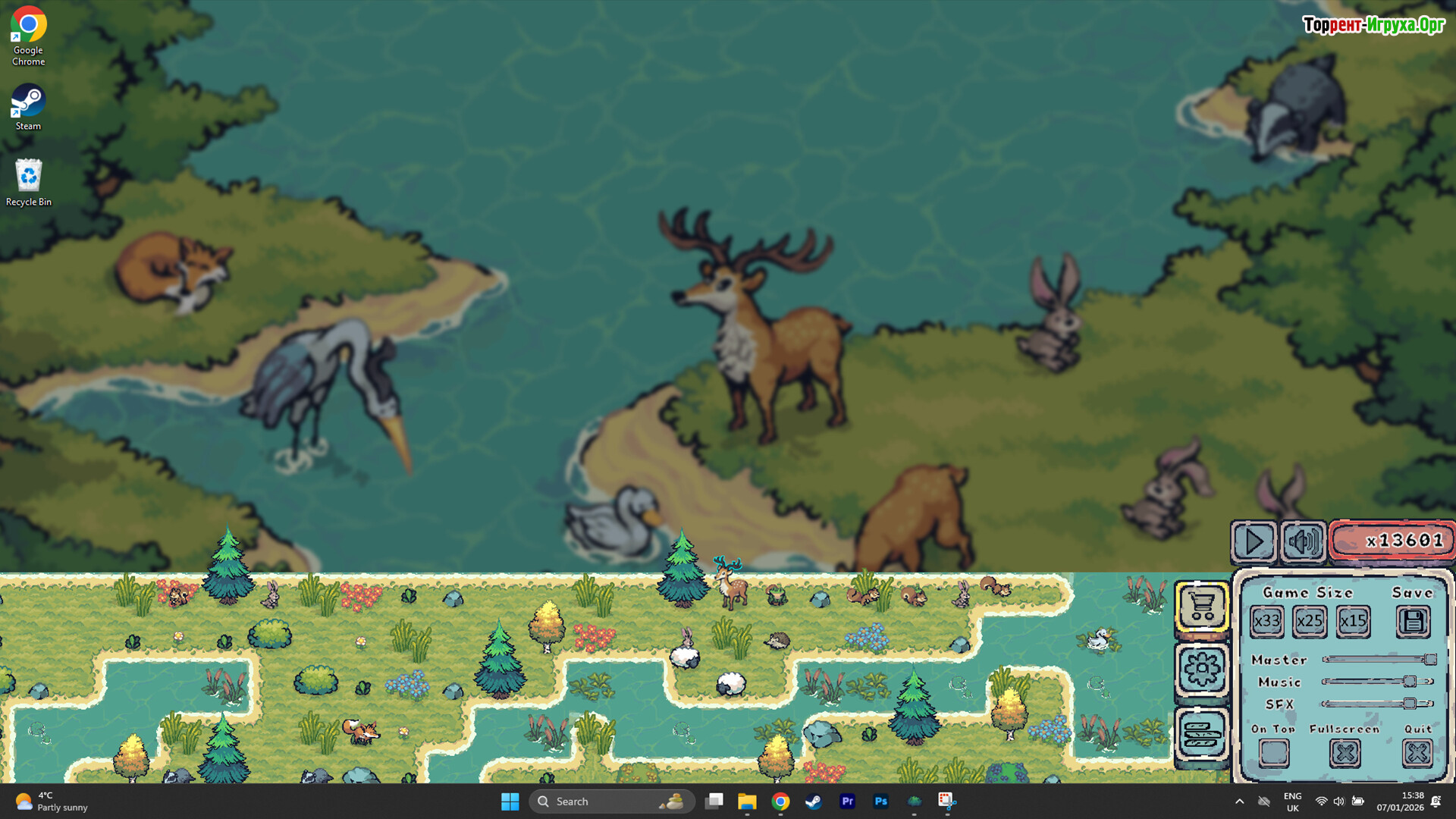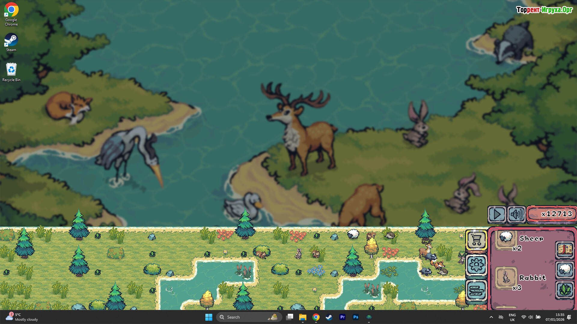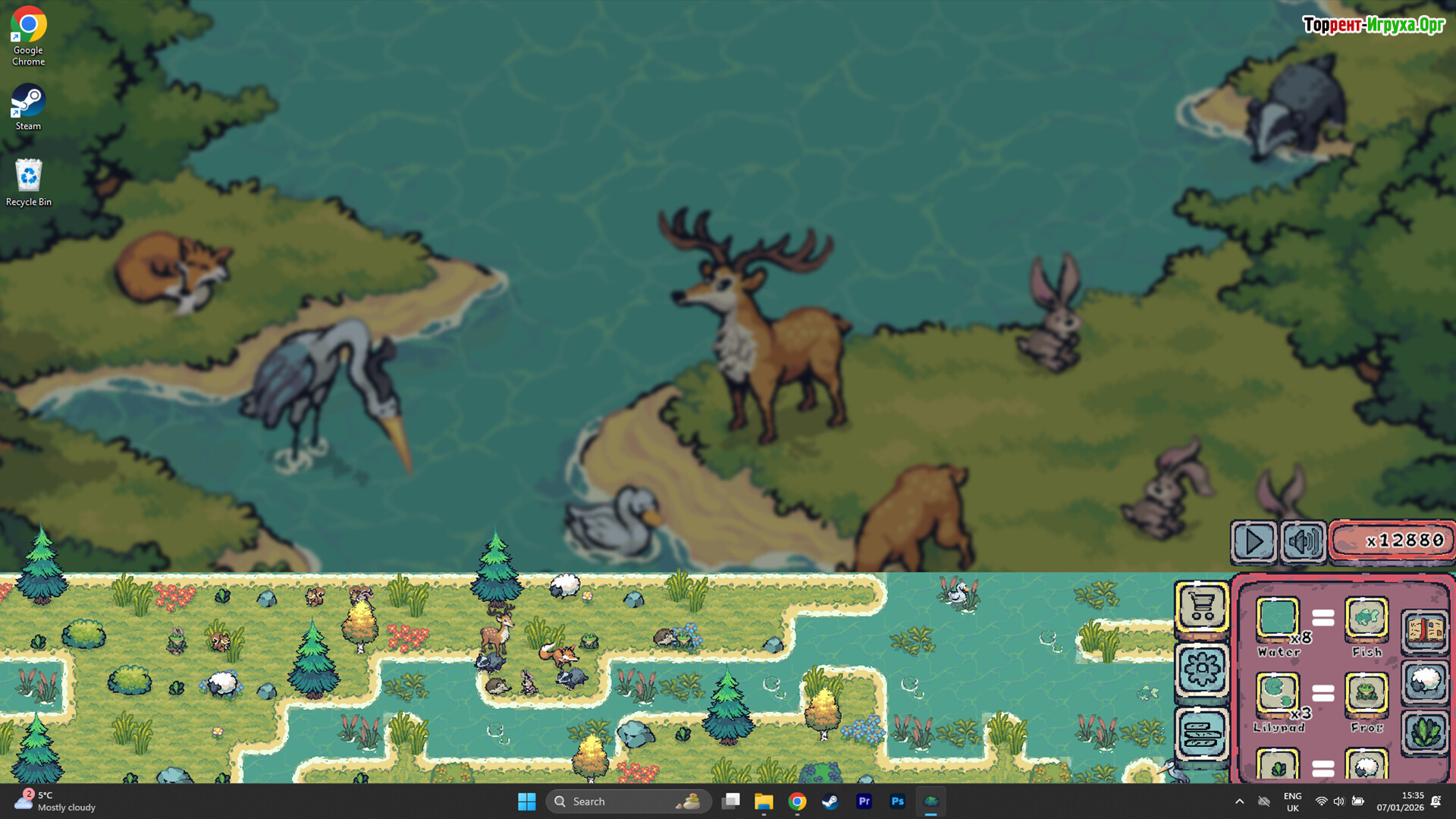 По мере развития среды появляются животные, которые заселяют созданные места обитания. Птицы находят ветви для отдыха, лягушки устраиваются у воды, а лесные существа осваивают тёплые участки. Анимации остаются ненавязчивыми, вода течёт мягко, и атмосфера поддерживает спокойное фоновое присутствие на рабочем столе.