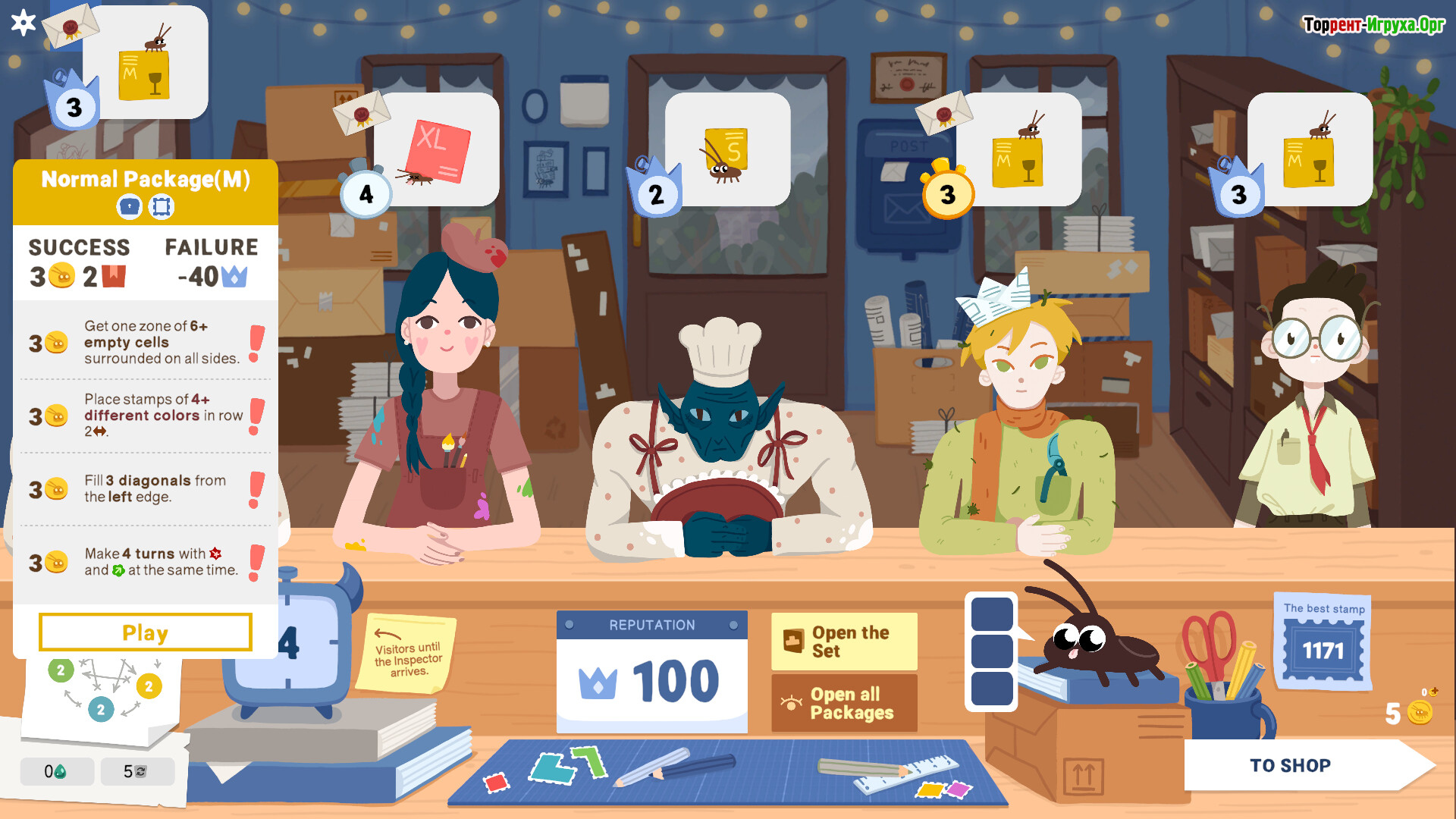 Roach Post — это почтовая рогалик-головоломка о восстановлении заброшенного отделения по приказу Королевской Почтовой Академии. В роли новичка-почтальона вы клеите марки разных форм, собираете очки и отправляете посылки, пока инспекторы следят за качеством работы. Единственные помощники — тараканы-сотрудники, каждый со своим характером и бонусами, способными изменить ход смены.