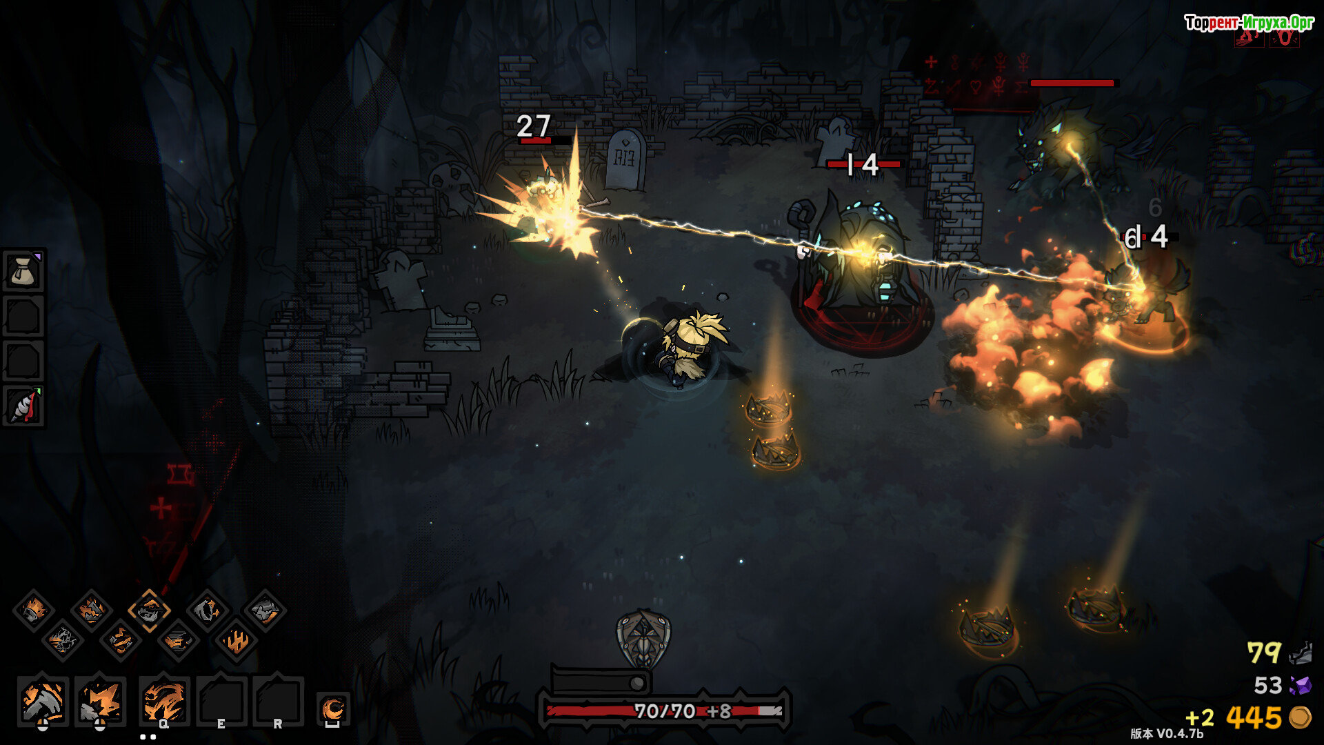 Разрушенный мир скрывает следы древней магии. Ведьма, некогда владевшая огнём, потеряла силы, но они стали частью твоего арсенала. Разнообразие оружия позволяет менять подход к сражениям: кинжалы разрезают пустоту, огненные вспышки взрывают врагов, а ледяные импульсы замедляют всё вокруг. Стиль боя формируется через сочетание навыков, которые игрок выбирает на каждом этапе, усиливая любимые комбинации.
