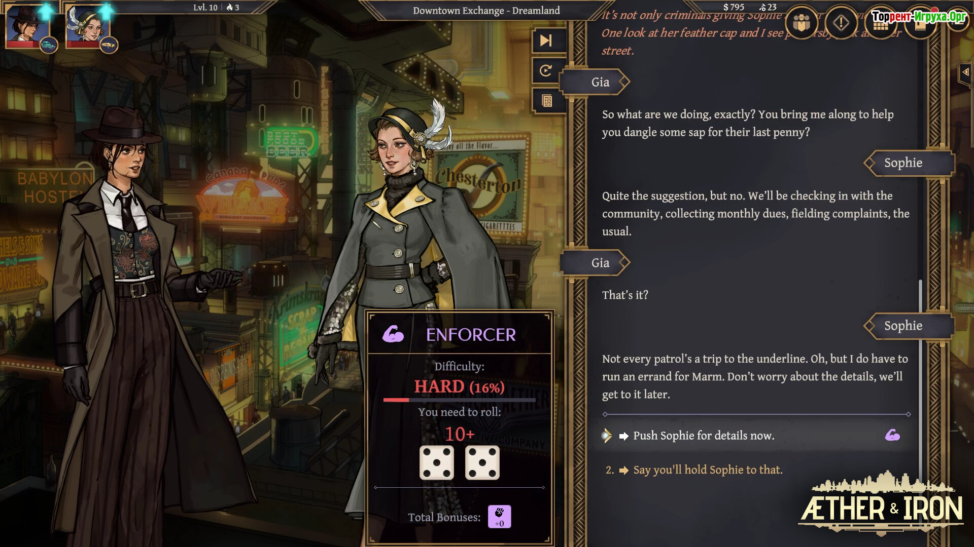 Aether & Iron — это сюжетная RPG, переносящая игрока в альтернативные 1930-е, где антигравитационные технологии изменили привычный мир. Дороги поднялись в небо, автомобили летают над крышами небоскрёбов, а Нью-Йорк стал центром контрабанды, политических интриг и социальных разломов. Герой выживает среди преступных кланов, магнатов и подпольных структур, влияющих на судьбы жителей огромного мегаполиса.