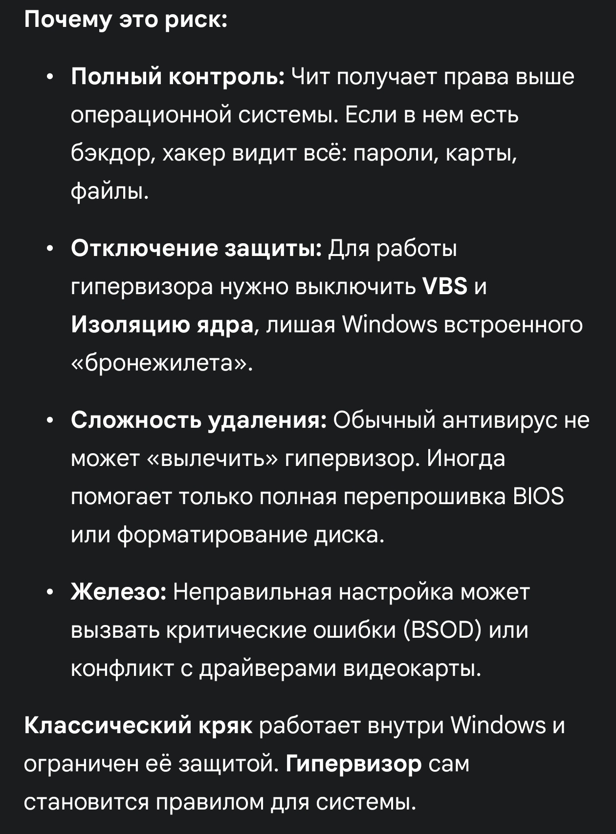 Тут чудрики рассказывают страшилки, что если воспользуешься гипервизором то у тебя все украдут, винда полетит, комп сгорит, дом сгорит xD. Не слушай дурачков. Метод через Гипервизор настраивается за 5-10 минут, ролик с инструкцией на Ютубе идет буквально 6 минут 17 секунд. Hypervisor Bypass Setup Tutorial. (Resident Evil 9) Updated