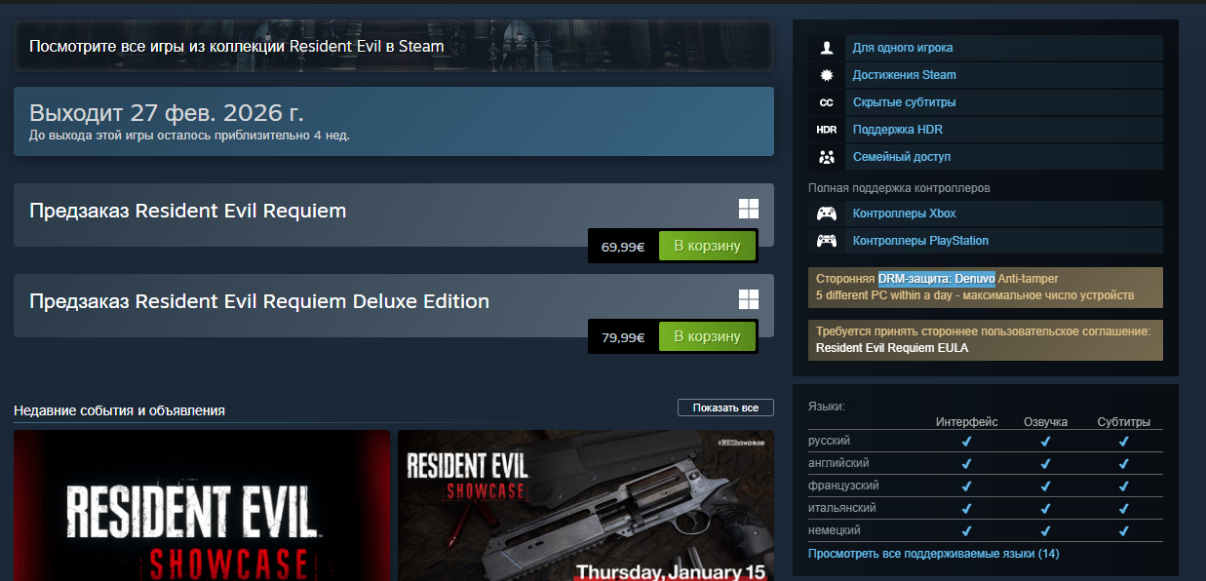 Resident Evil Requiem — это зрелищный экшен в постапокалиптической вселенной, где каждое событие — часть грандиозной истории. Девятая глава легендарной серии предлагает новую постановку: больше действия, глубокий сюжет, масштабные миссии и выбор, который влияет на весь мир. Здесь борьба идёт не только за выживание, но и за правду, спрятанную в тенях разрушенного мира.