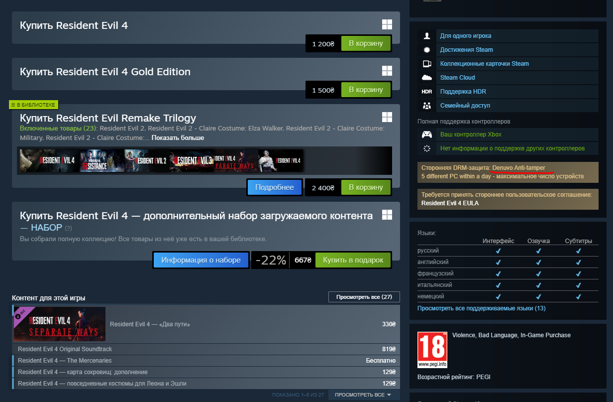 Вы что сами несете чушь . У меня большая коллекция игр из серии Resident Evil ! некогда не было Денуво .