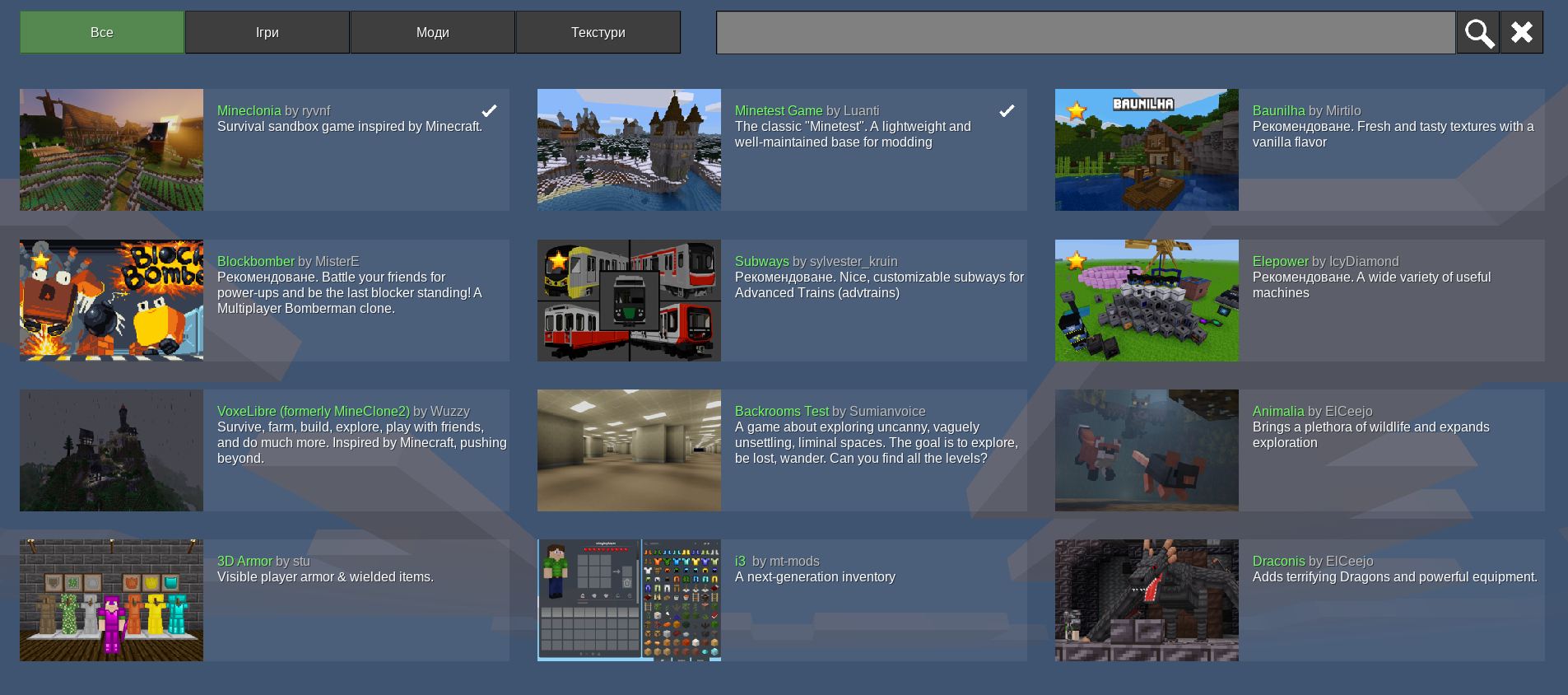 Vetini, я решил поискать бесплатные игры с исходным кодом, и нашел игру, скорее приложение Luanti, и там короче скачал Mineclonia и также можно другие качать, короче эта игра копия игры майнкрафта, говорят что это ответка платному майну, и там куча карт уровней, и модов коть задавись, и все это бесплатно, игра полносью поддержует коды програмирования, и можно играть и делать игру под себя, короче там куча, майнкрафт прям копия! И это легально все, есть целие сайты форумы, короче бомба, реально почти от реального майнкрафта не чем не отличаеться, только свободой. Вод одно фото как выглядит майн. Достижения мультиплеер, тут миллиард! Короче топ, рекомендую поиграть, реально ооочень хорошый аналог бесплатного майна. Да графика плохая слегка, но зато тут обсалютно все сделали, я проверил игру, играю 2 часа, проверил прям все скопировали) и можно скачать на официальном сайте легально, тоесть ето не пиратский майнкрафт, и там прям все, я все проверил даже не знаю как сказать, все все все скопировано.