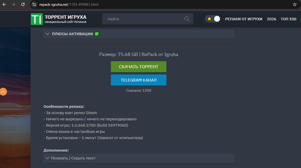 Если вы имеете ввиду, точно второй сайт Игрухи, показанный на скриншоте ниже, то можете скачать там, пока это ещё возможно сделать без VIP )