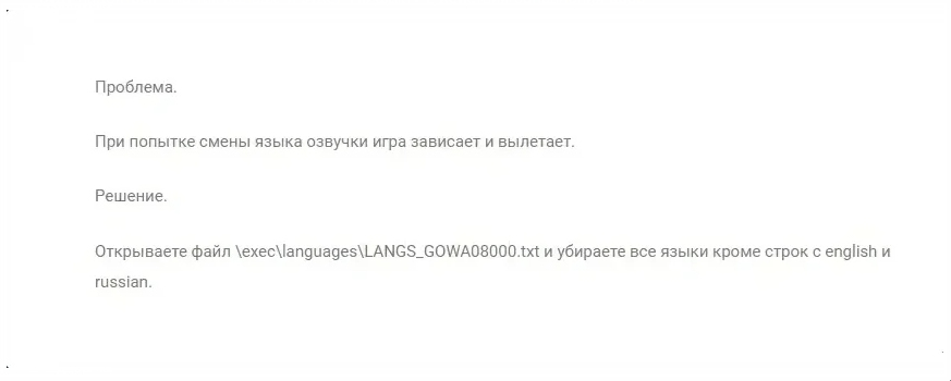 Когда я пытаюсь поменять язык озвучки в игре, она зависает и вылетает. Можно ли как то поменять язык игры не заходя в саму игру?