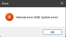 при запуске даёт такую ошыбку (Internal error 0x06:system error) помогите исправить.