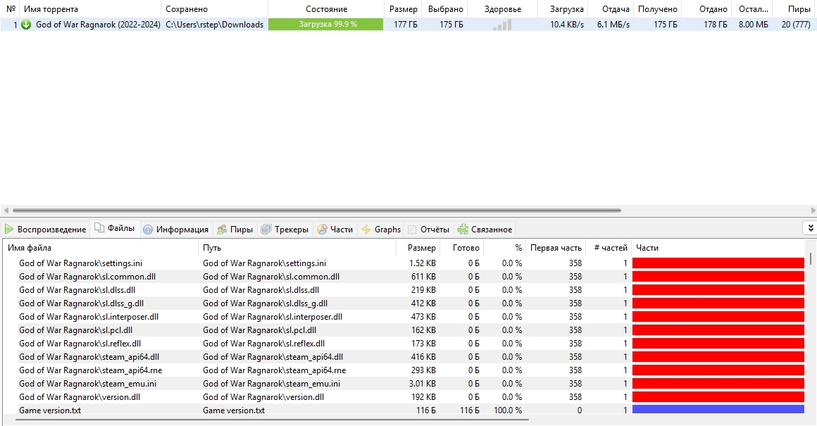 Не скачиваются файлы длл и остальные. "Части" горят красным, будто недоступно. 2-ой раз скачиваю.