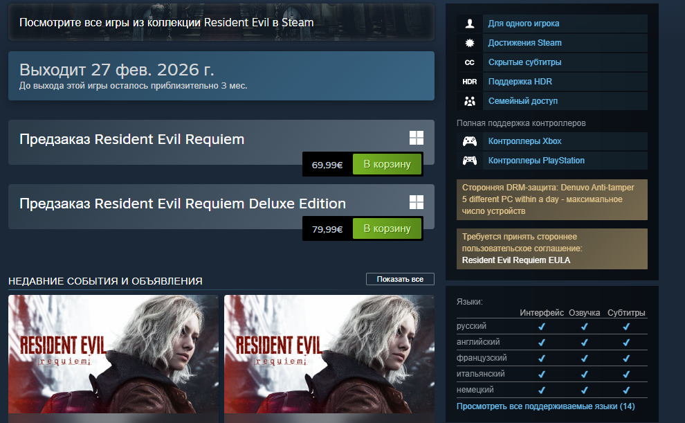 в Steam появилась информация о том, что игра будет защищена Denuvo и Denuvo Anti-Cheat.