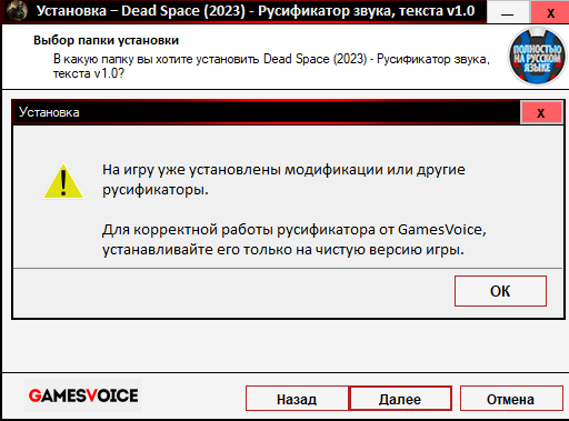 При установки озвучки возникает такая, проблема как можно решить ?