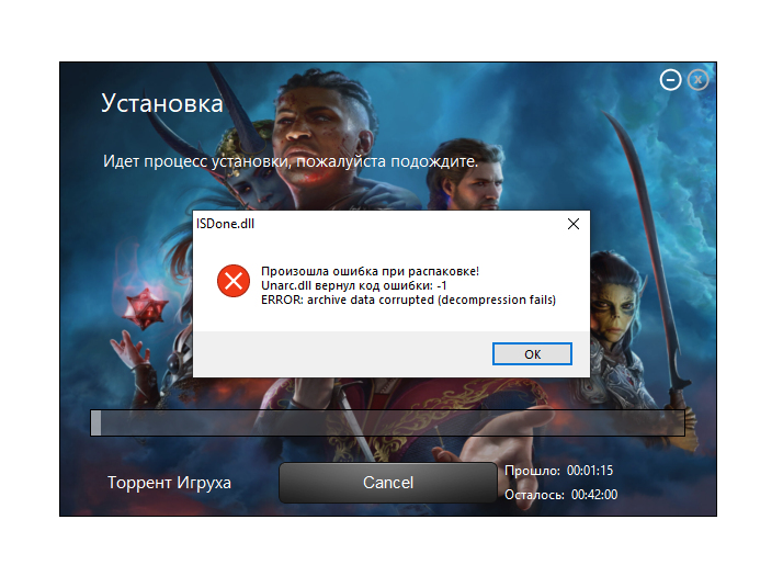 При попытке установки игры выдает такую ошибку (скрин), в чем может быть дело? Стандартные способы устранения попробовал, не помогают. Это может быть со стороны репака?