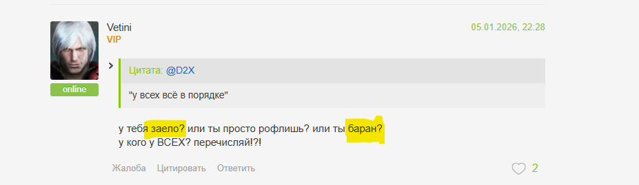 D2X, я перепрочитал когда это начелось, ну да ты прав он первый начел тебе оскорбления писать, ну ведь взлом же реально не работает, я бы не покупал игру если взлом работал, но ведь он реально не работал, а у тебя заработал, да не правильно сразу ругать что у тебя и у других людей заработало, но темболее ты сам говорил что за других людей не нужно думать, нравиться им игра, все у них работает, главное чтоб у тебя все работало и нравилось, ты говорил что тебе все равно на людей и их мнение, у тебя реально игра запустилась, может реально расскажишь что ты мог сделать чтоб она запустилась, я тоже качал игру она не запускалась, я бы не куплял игру еще раз повторюсь, но ведь взлом не рабочий был, или починили уже? Тошо мой друг наехал на тебя то да тут не спорю, но ведь ты начел ложь писать или недоговаривать, или взлом починили? Но ведь как он может работать, я проверял не работал взлом вот и купил игру бо ждать я не хотел вообще, и мне очень сильно хотелось поиграть заценить игру, темболее скидка бешеная воспользовался.